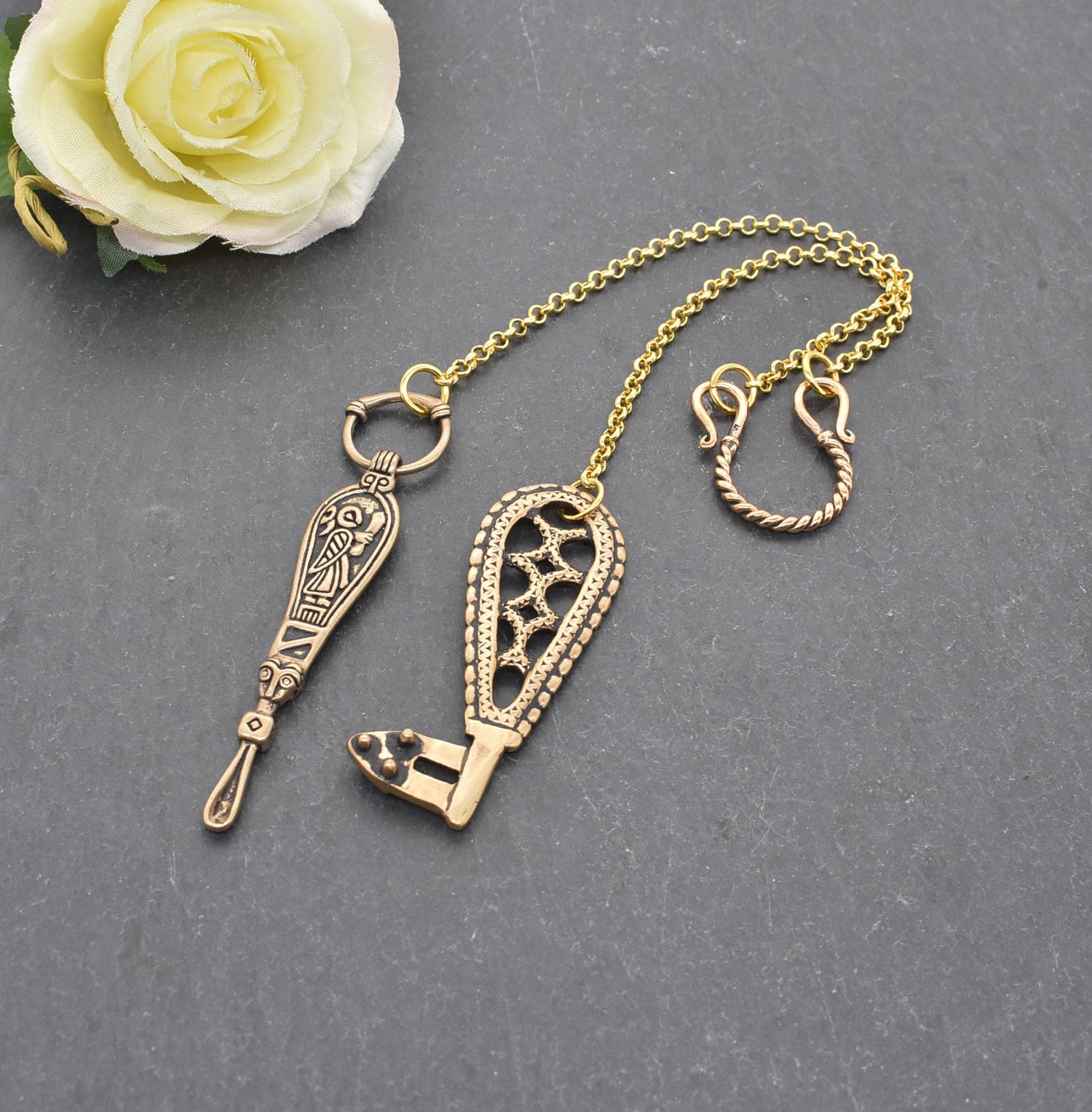 Bitte beachte, dass Bronze- und Silberschmuck in seltenen Fällen Hautverfärbungen verursachen kann, insbesondere bei empfindlicher Haut oder in Verbindung mit Feuchtigkeit.