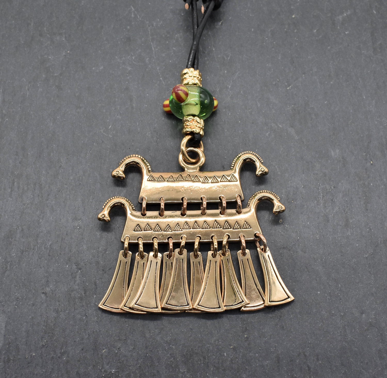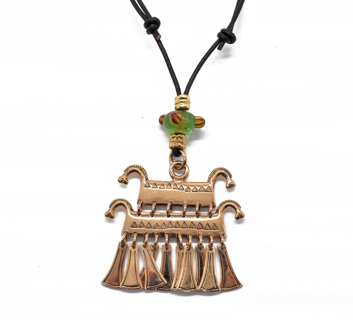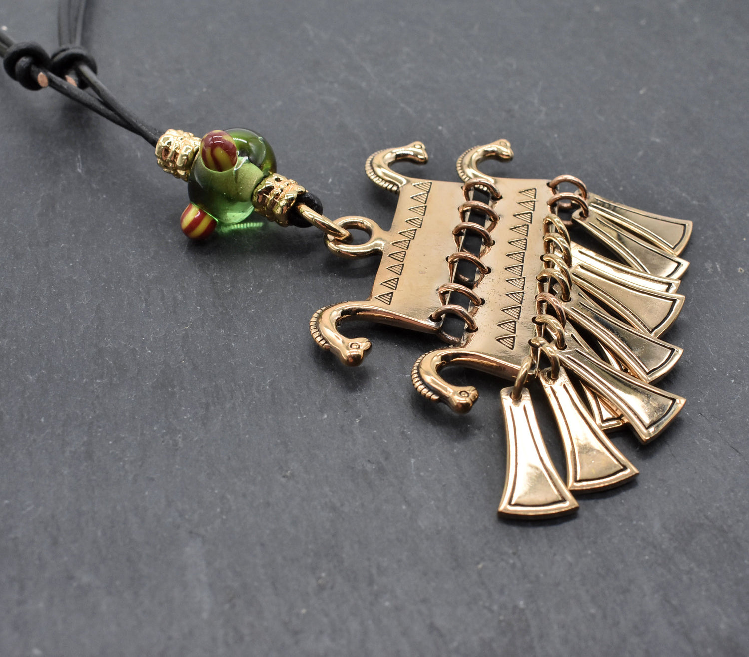 Keltische Halskette „Rhena“ – Magischer Klapperanhänger mit Pferdeköpfen