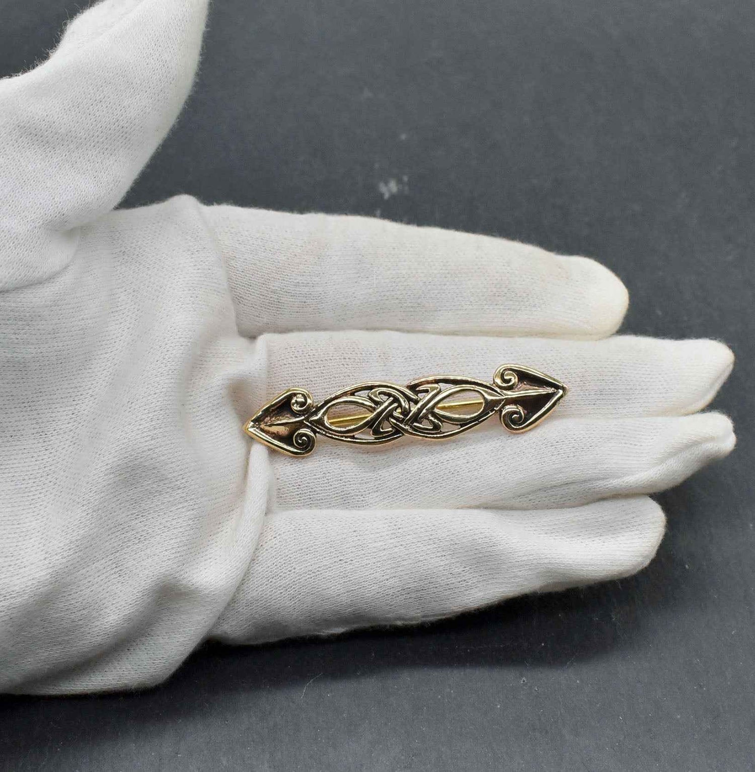 Die robuste Nadel lässt sich leicht durch den Stoff deines Umhangs oder Kleides stecken und sorgt dafür, dass alles sicher hält. Doch diese keltische Fibel eignet sich nicht nur für Mittelaltermärkte. Verwende sie auch im Alltag, um einen Schal elegant zu befestigen oder als besonderen Akzent an deinem Jackenreviers.