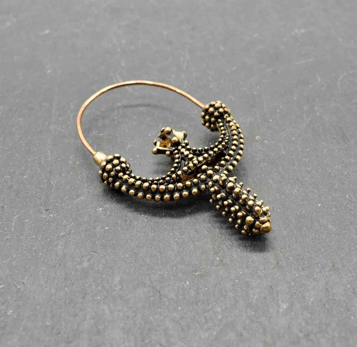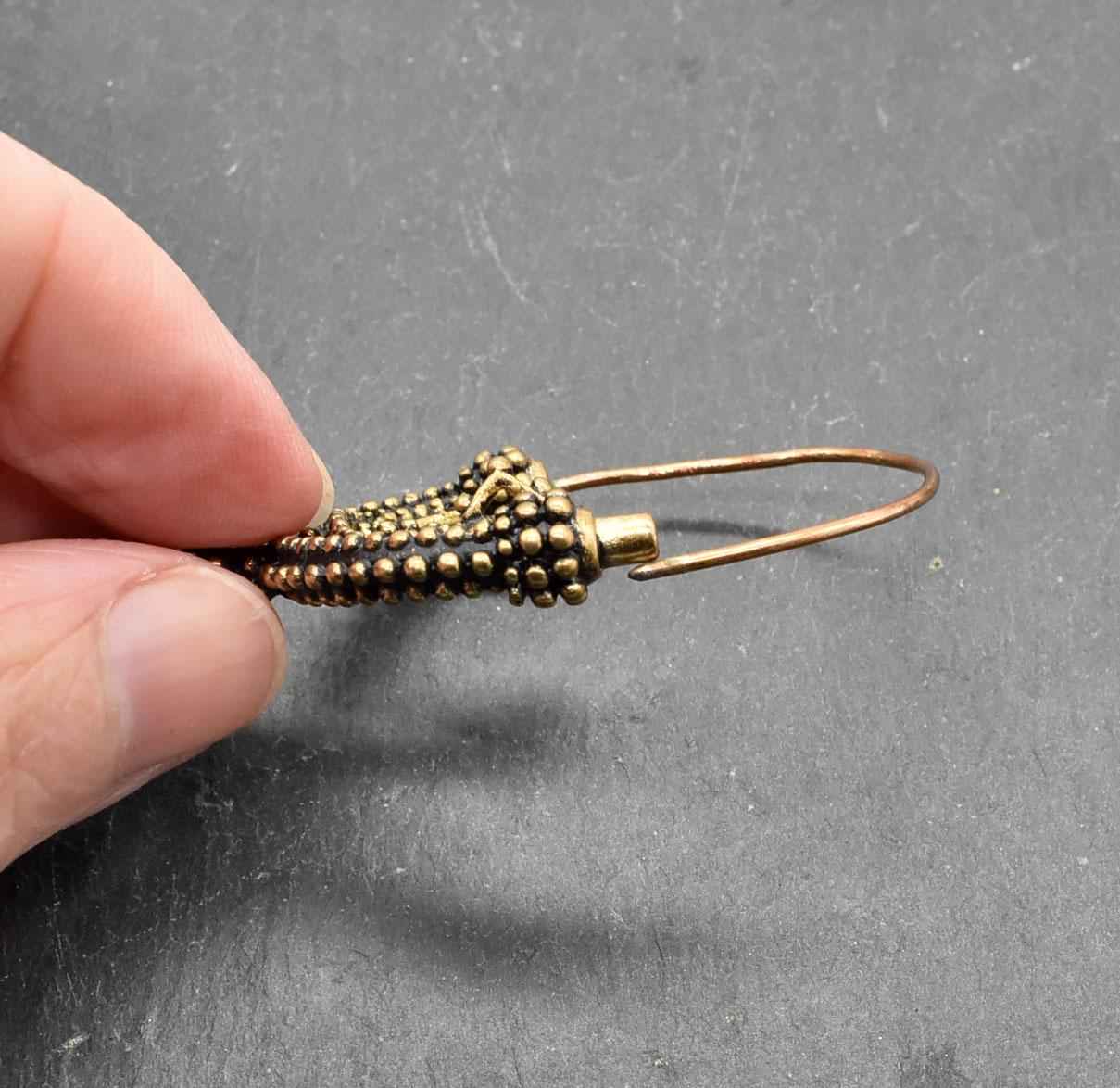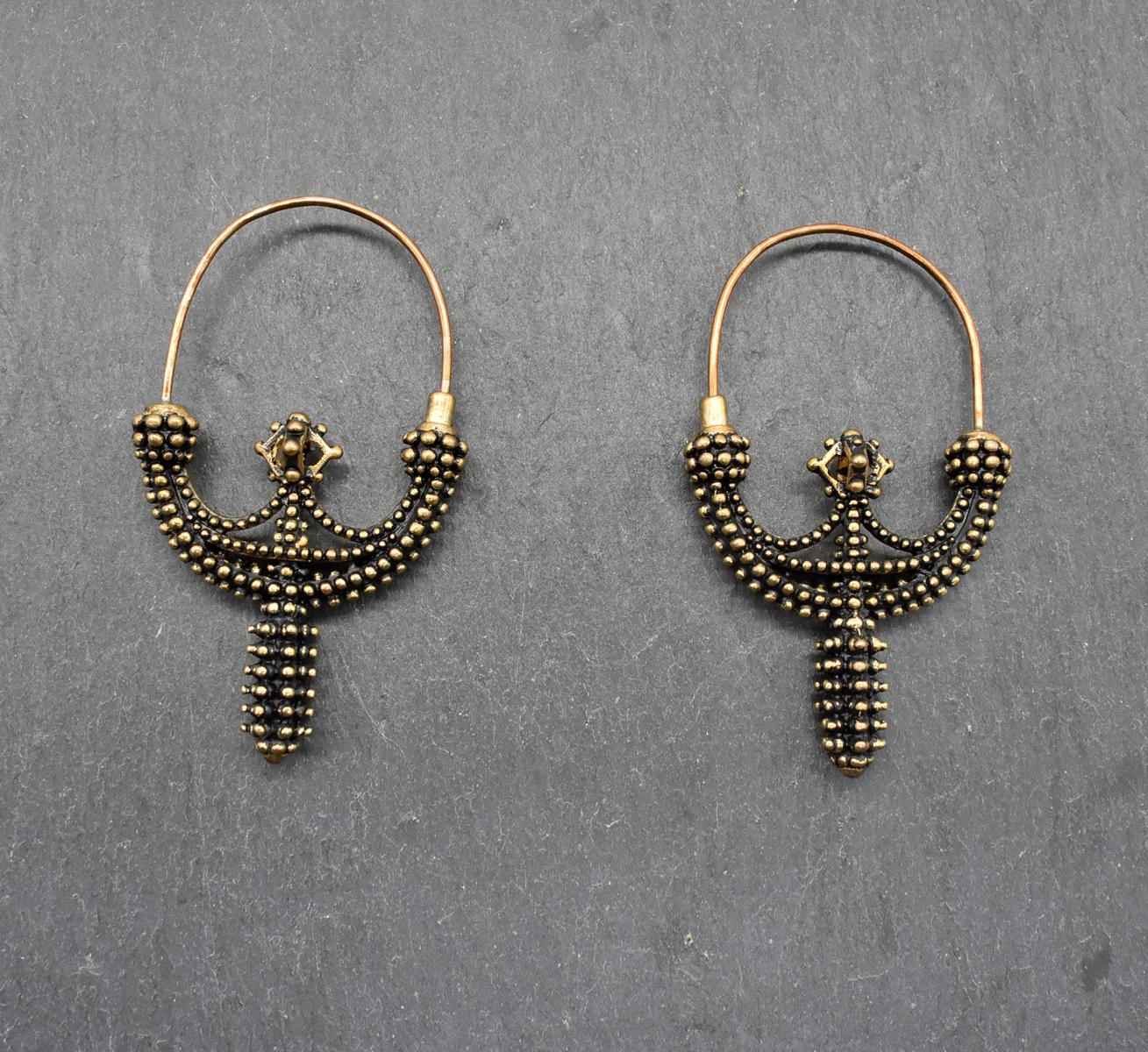 Diese Schläfenringe wurden sorgfältig aus Bronze gefertigt und sind eine detailgetreue Nachbildung. Das warme, goldene Schimmern der Bronze verleiht jedem Stück einen besonderen Charakter und macht es zu einem echten Hingucker bei deinem nächsten Mittelaltermarkt oder Reenactment-Event.