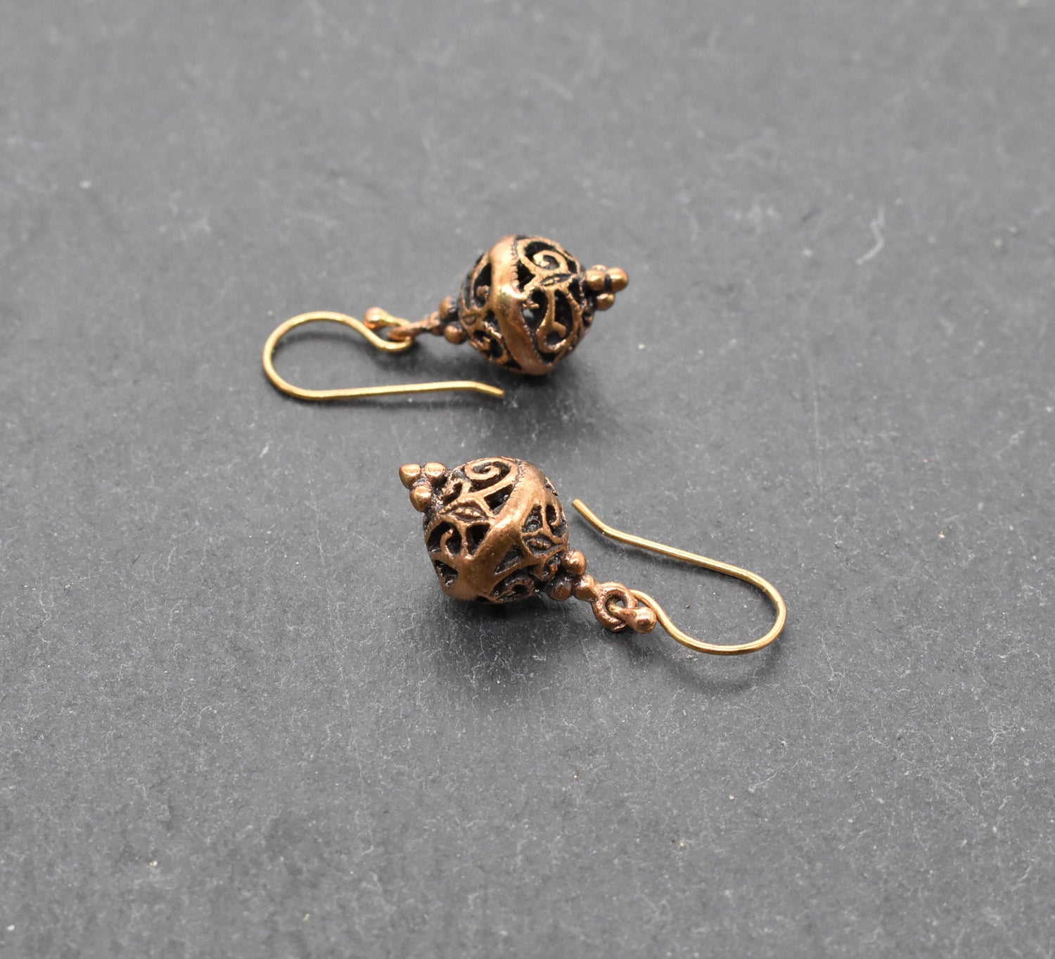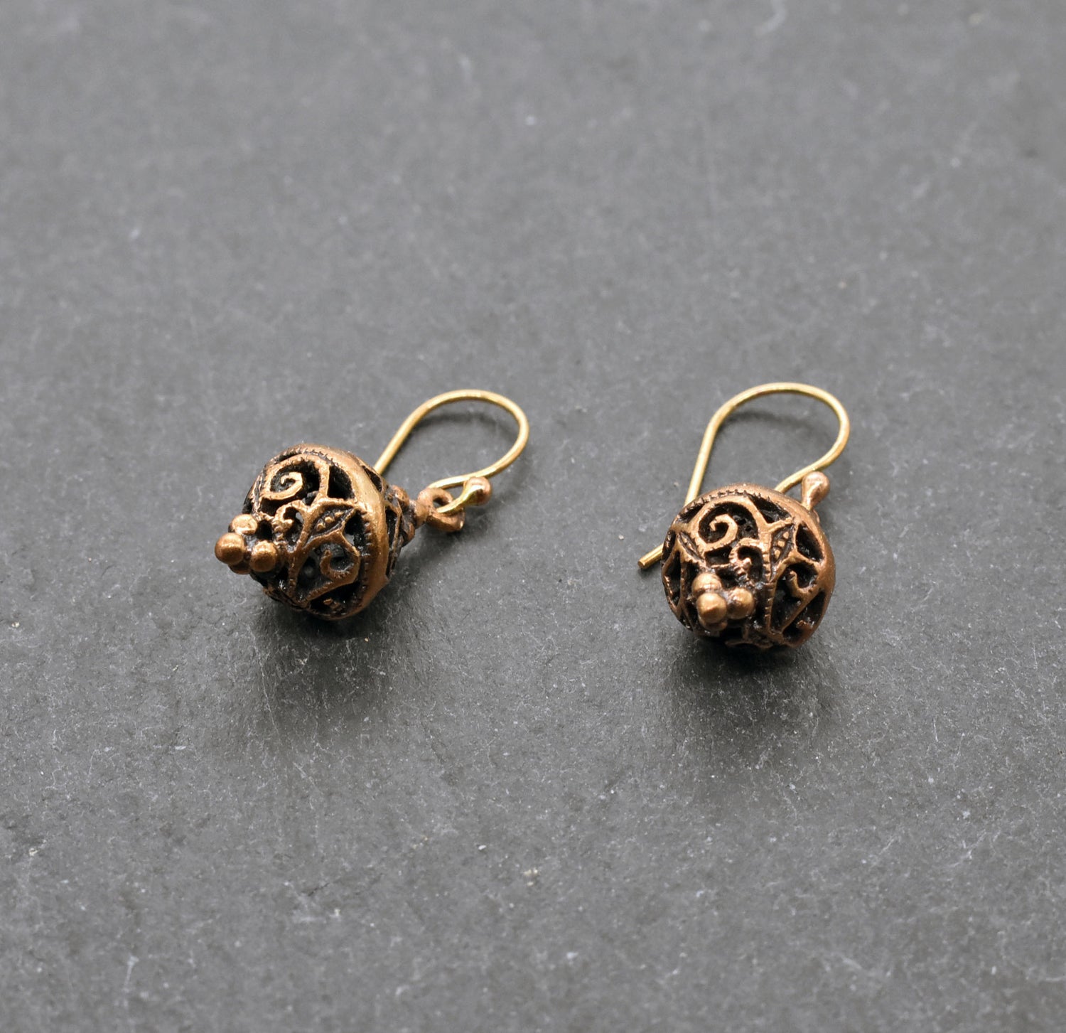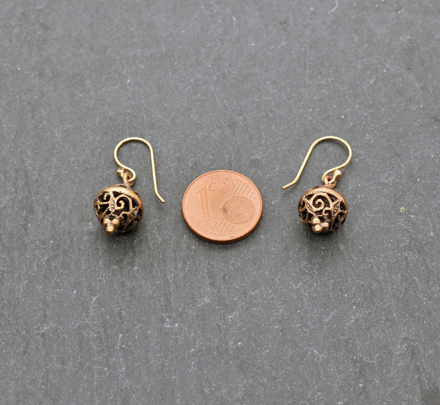 Mittelalterliche Bronze Ohrringe mit verschlungenem Durchbruchs-Muster – Filigraner Ohrschmuck im historischen Stil