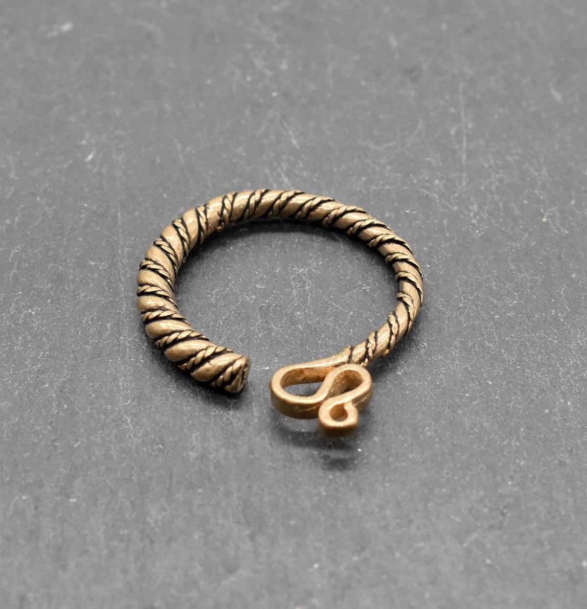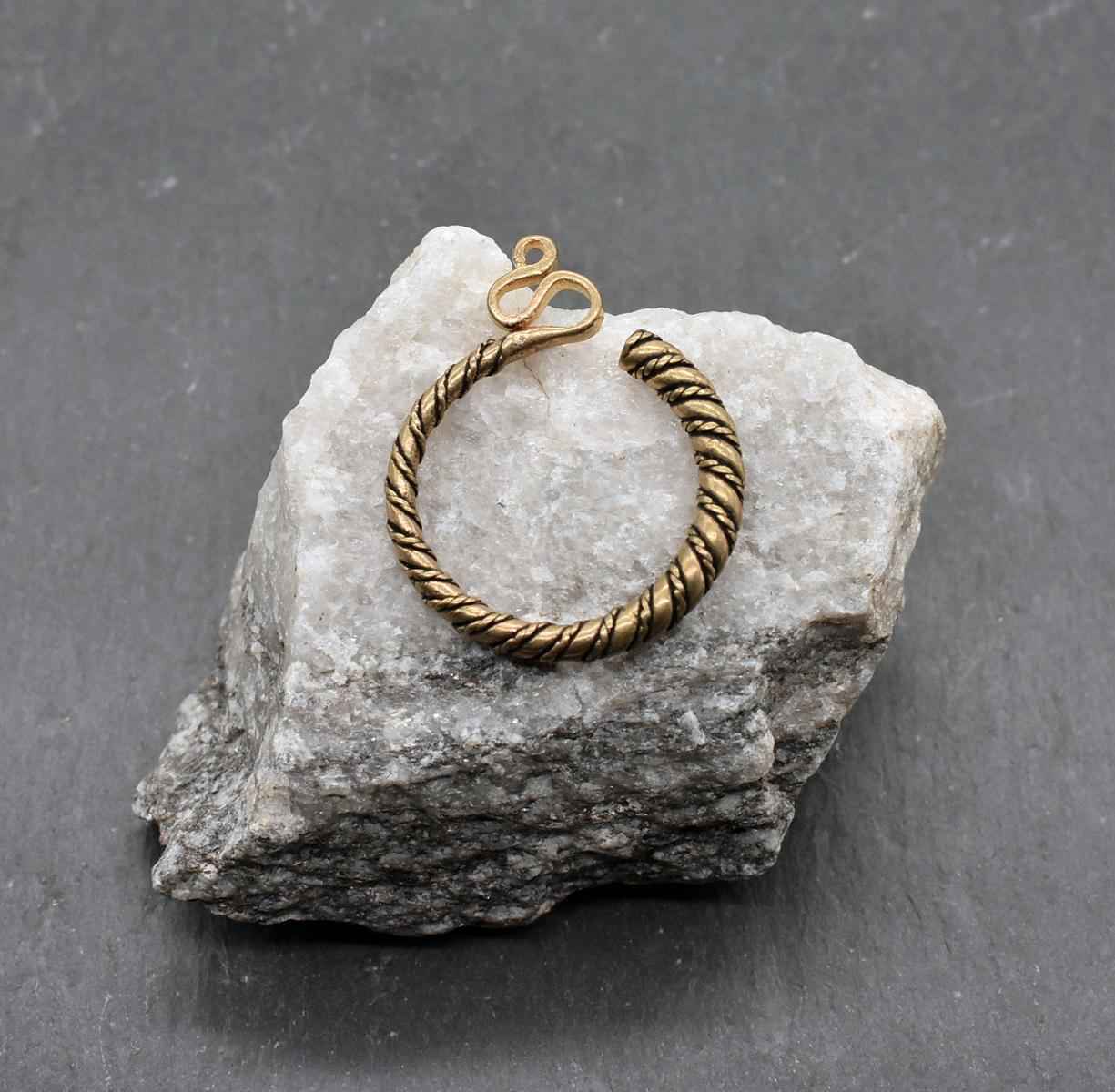 Die Vorlage für diese Nachbildung stammt aus Skandinavien und bestand ursprünglich aus Silbergold (Electrum). Doch nicht nur bei den Slawen erfreuten sich Schläfenringe großer Beliebtheit – auch Franken und Alemannen trugen sie während der Merowingerzeit im Frühmittelalter. Zahlreiche Fundstücke aus Süddeutschland belegen ihre weite Verbreitung.
