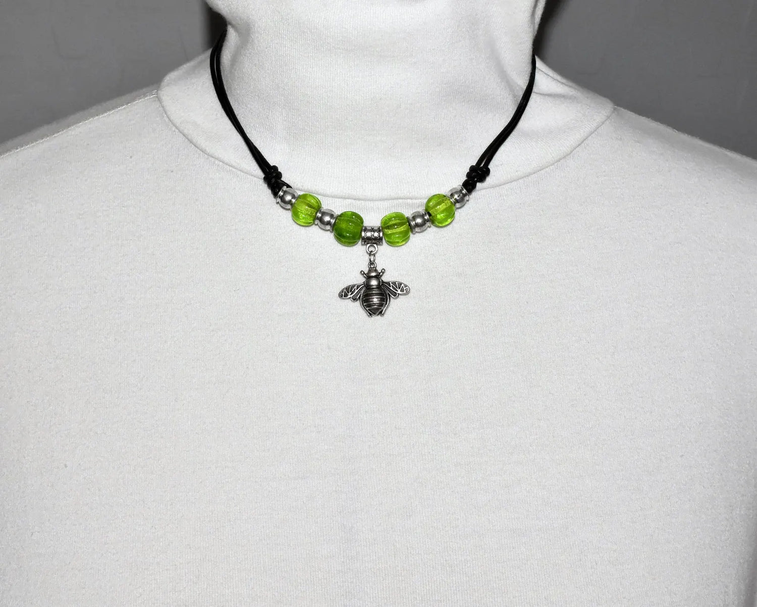 - Anhänger: Eine silberfarbene Biene aus hochwertigem Zamak-Guss (Größe ca. 2,1 × 2,6 cm).