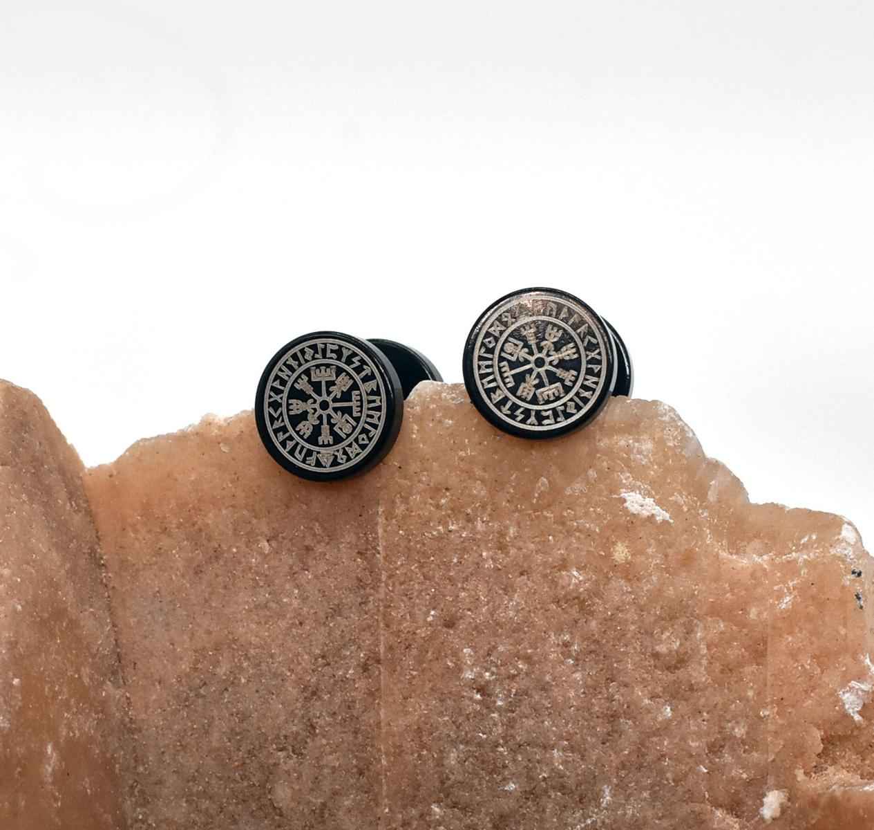 Entdecke diese einzigartigen Fake Plugs mit Wikinger & keltischen Motiven – die perfekte Ergänzung für deinen mittelalterlichen Look! Die schwarzen Ohrstecker mit weißen Designs sind echte Hingucker und bringen den Zauber vergangener Epochen direkt an dein Ohr.